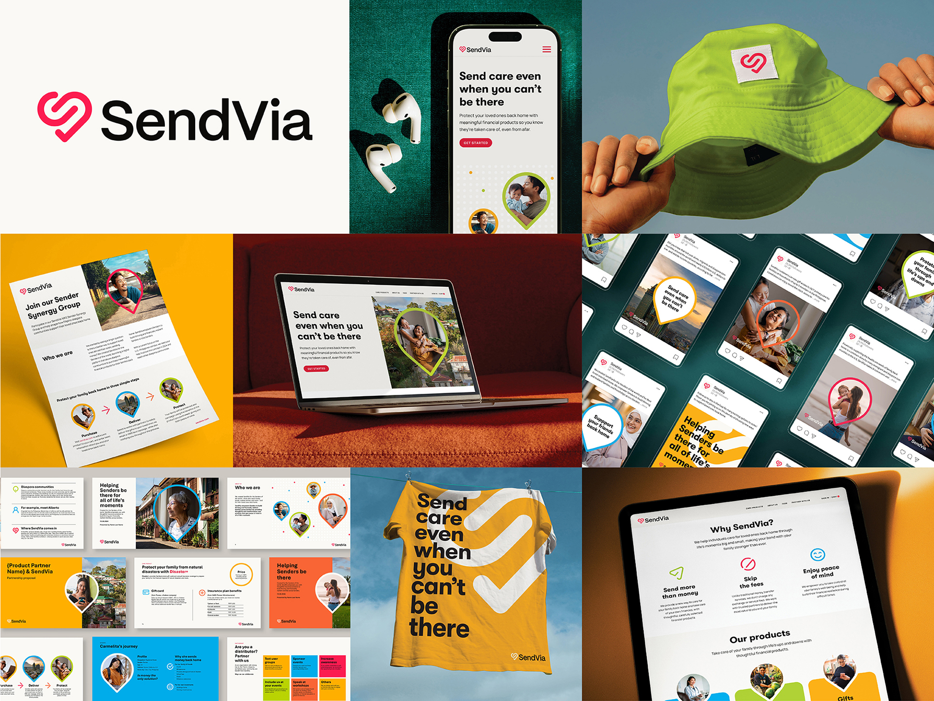 From color and typography to brand expression, the identity was designed to feel welcoming, trustworthy and modern—reflecting SendVia’s role in bridging distance through technology and care. See the case study.