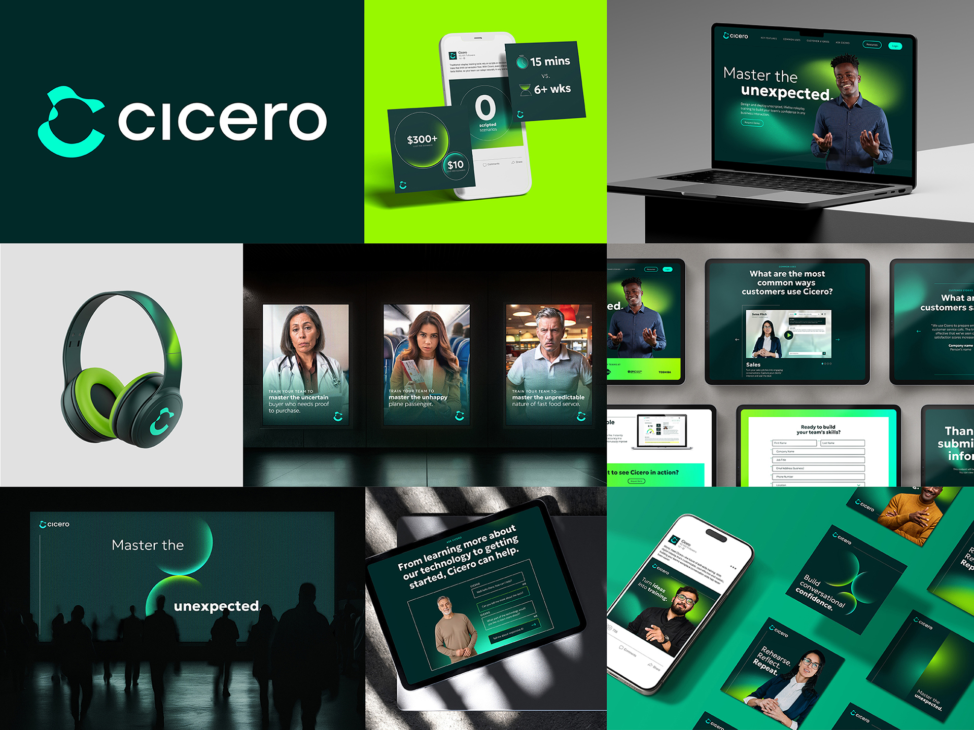Cicero is an AI-powered training platform transforming how organizations approach learning and development. Our work focused on translating that innovation into a visual identity that feels modern, confident and scalable—one that signals both technological sophistication and clarity of purpose.