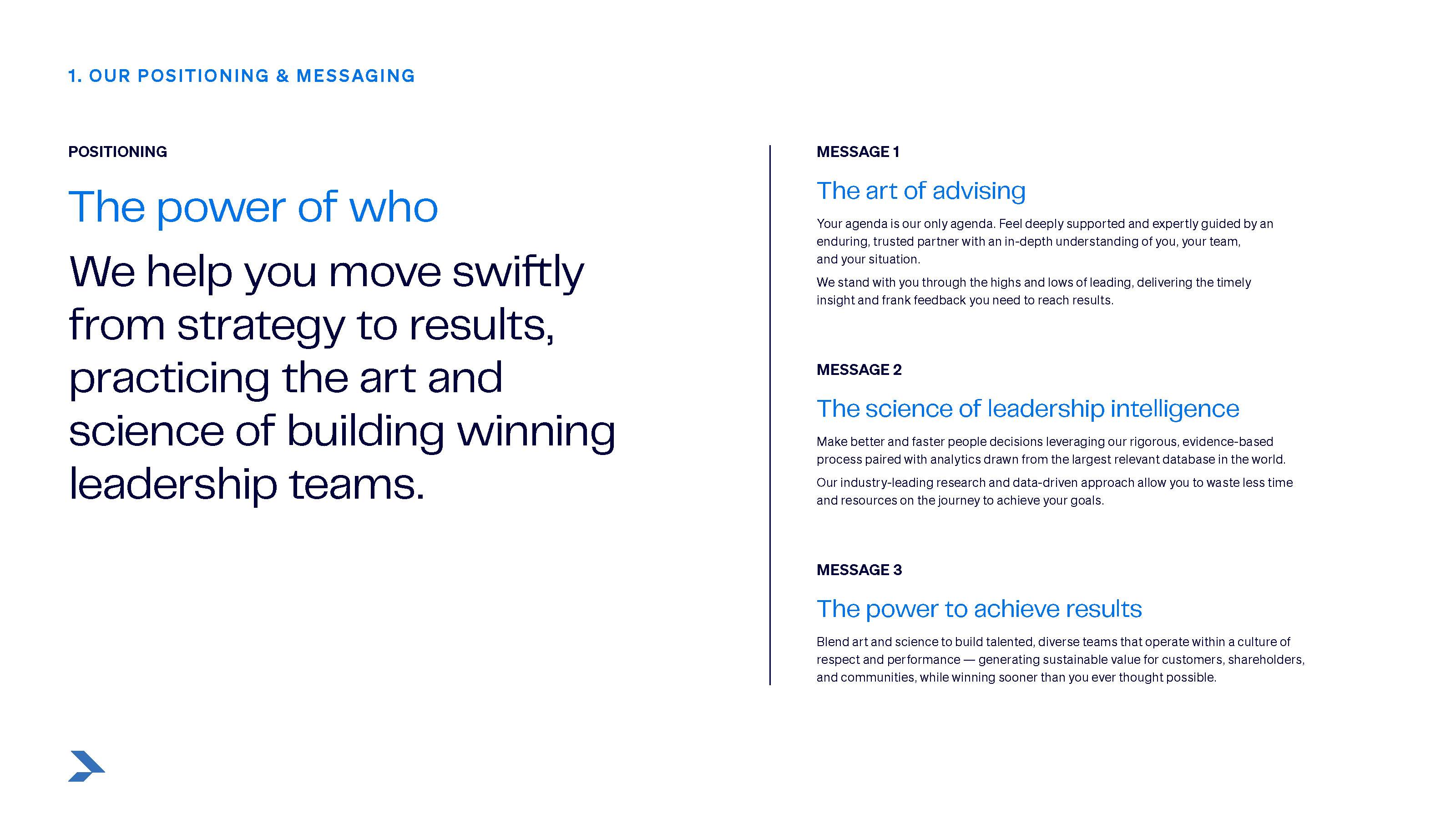That discipline—to release what no longer serves—became the foundation of the work. It cleared the path for two ideas that defined the rebrand: The Power of Who, the firm’s positioning idea, and The Leading Edge, the concept behind its visual identity. Together they captured the precision, depth and humanity that had always defined ghSMART but had never been clearly articulated.